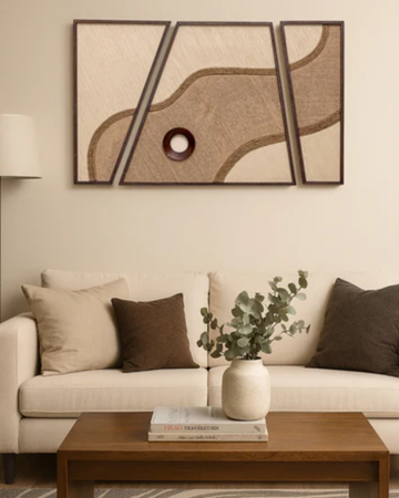 Inspired by natural elements and material balance, this panel series blends earthy tones with hints of black...