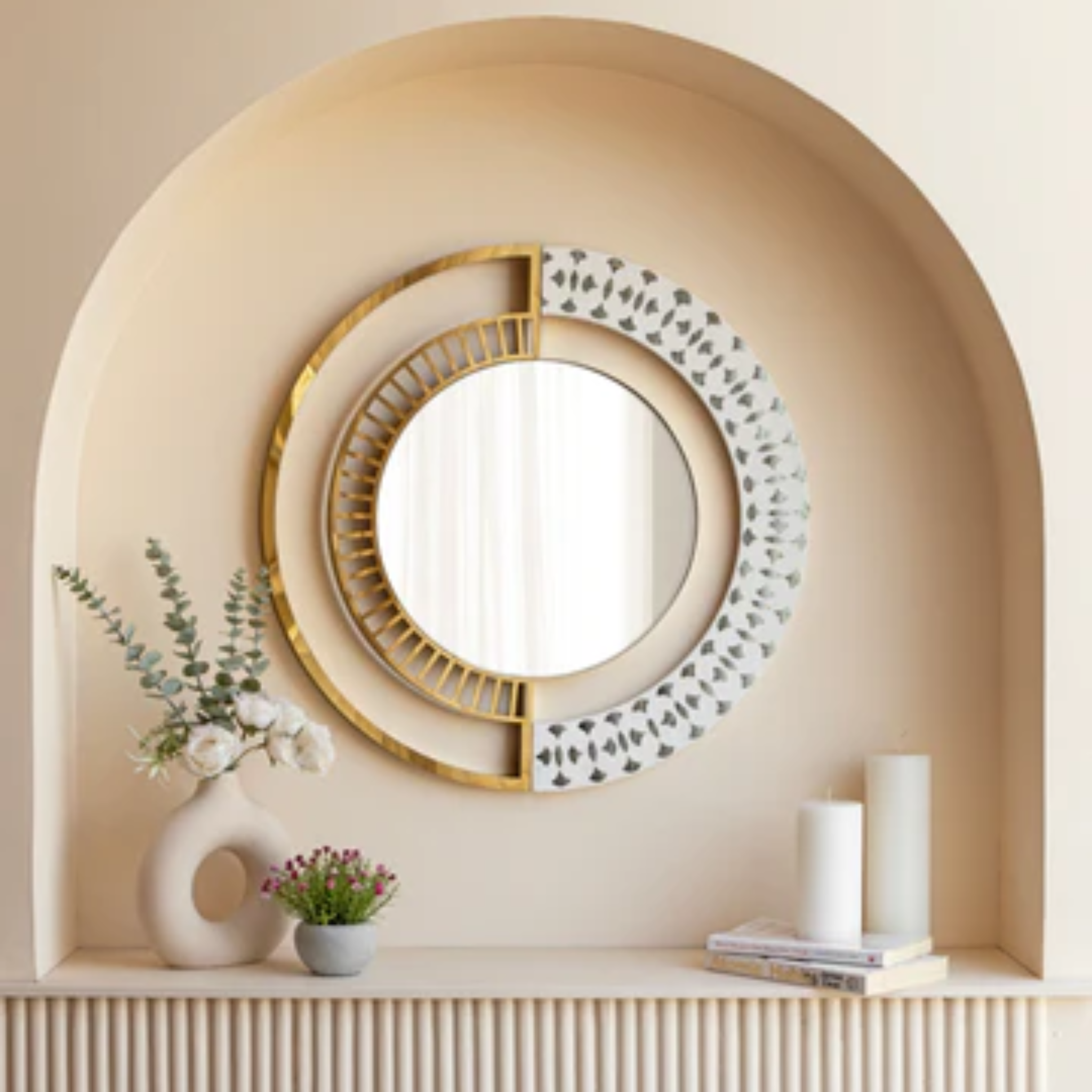 The clean lines of modern design meet the timeless shimmer of Thikri.The clean geometry contrast s...