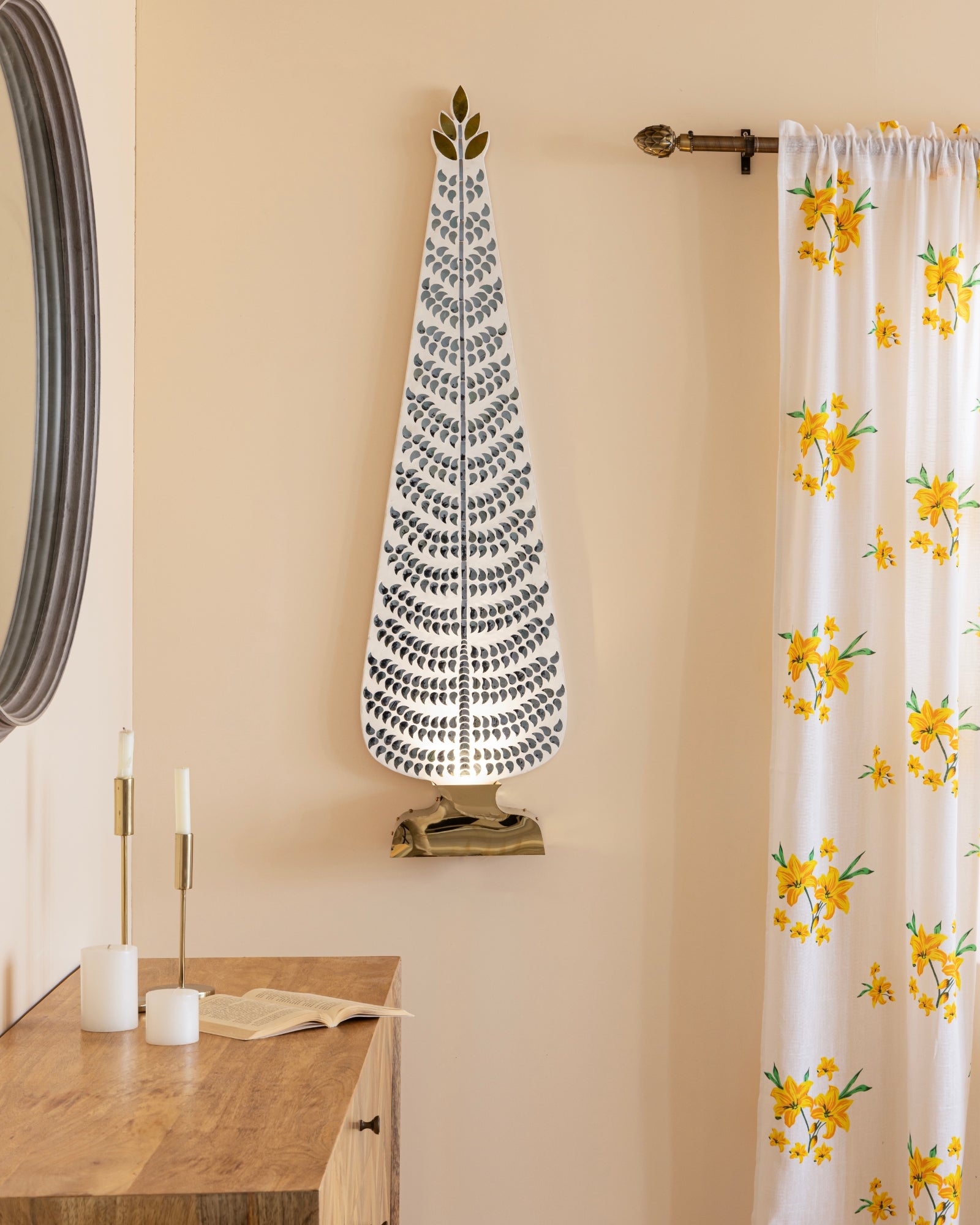 “Light of Fragments” is a wall light collection that explores the sacred balance between craft and clarity, where hand cut Thikri craft shimmers across moden silhouttes, Rooted in the symbolism of nature, From grace of Ashoka tree to modern contemporary designs.