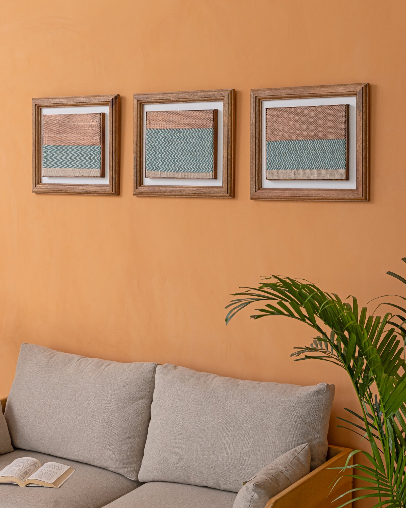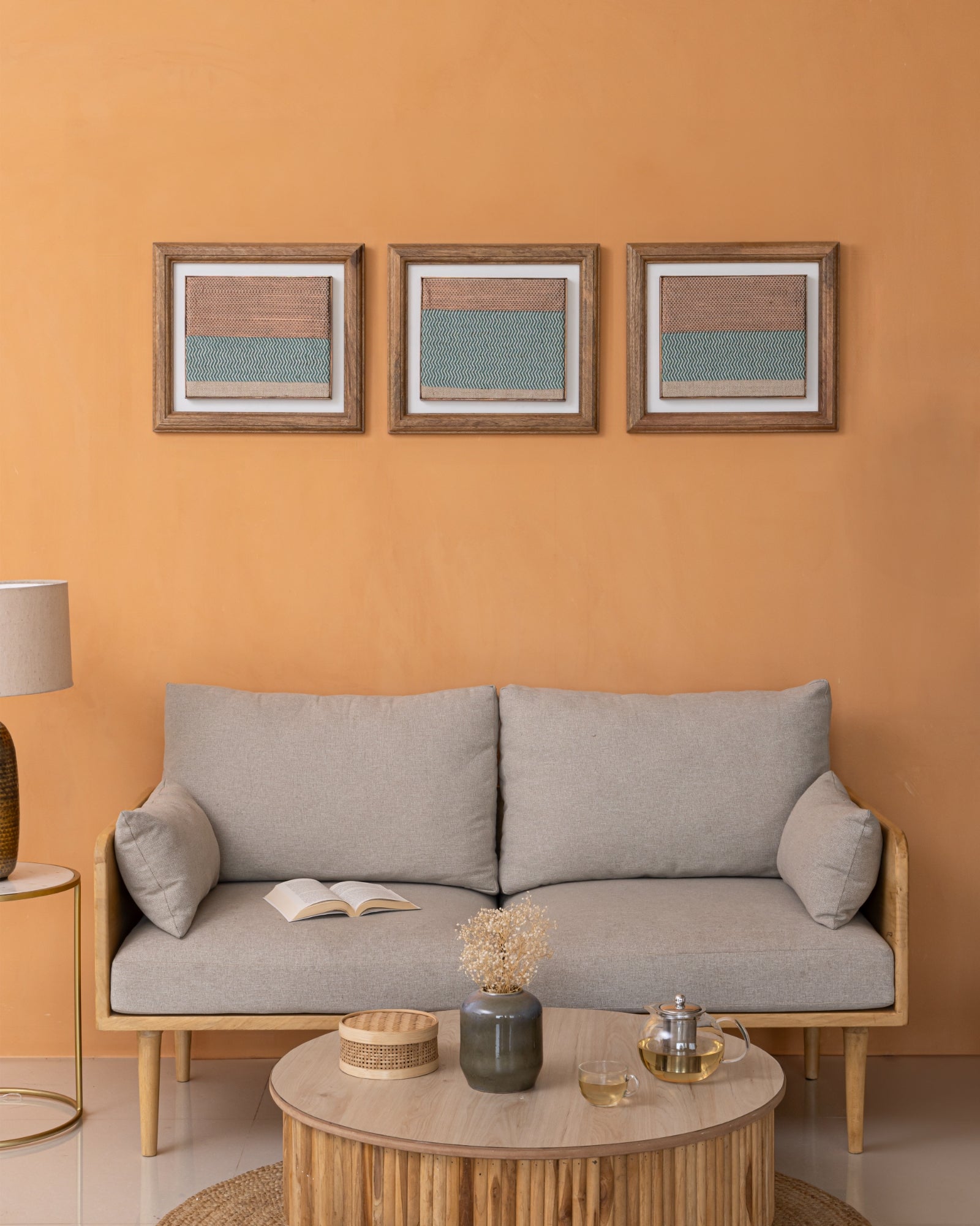 Ideal for living rooms, passage walls, or creative corners, this collection adds a subtle artistic layer—where every panel feels like a woven memory of nature’s vast and ever-changing horizon Inspired by the meeting point of earth, water, and sky, ‘Horizon’ is a panel series that captures nature’s calm transitions through material and form.