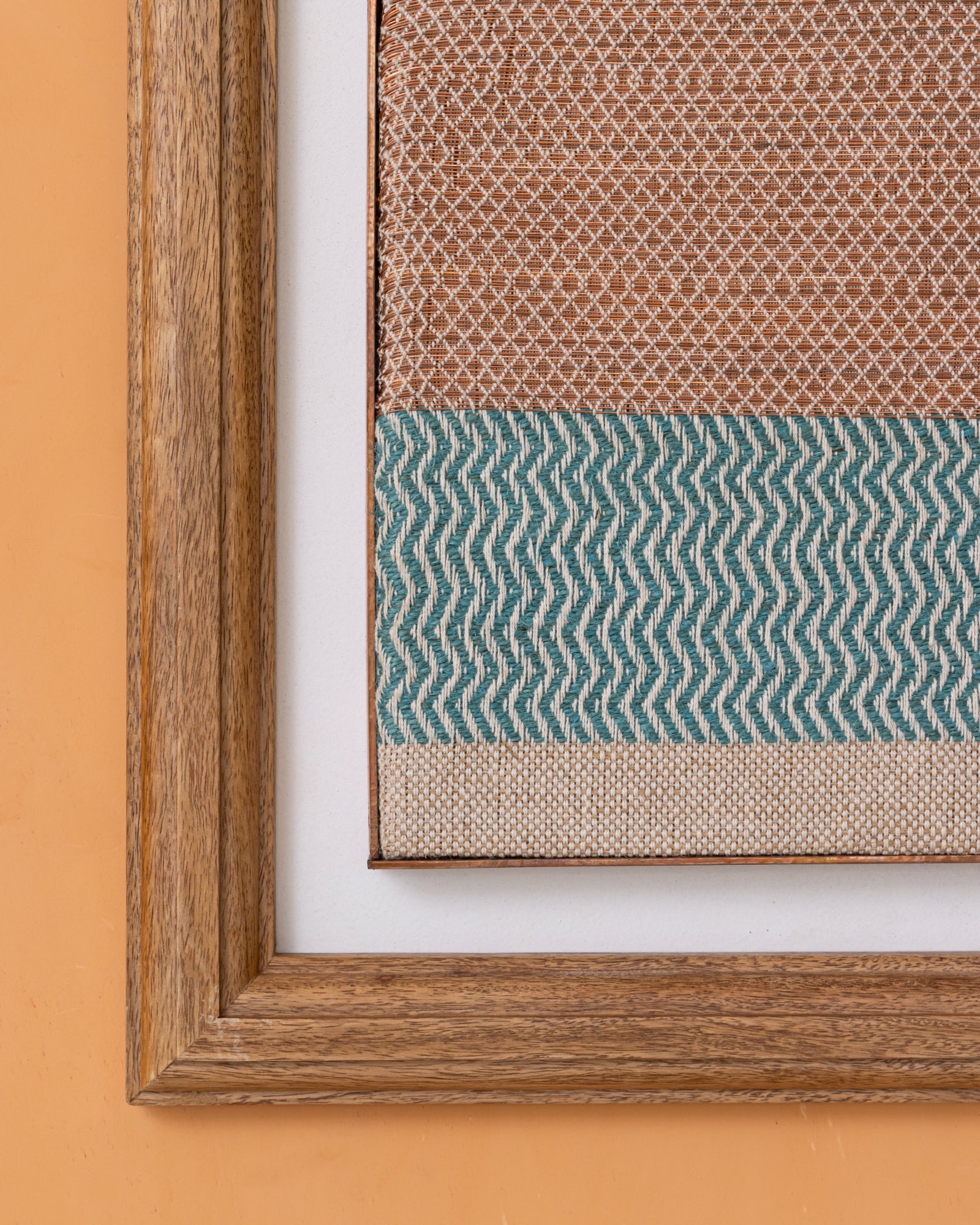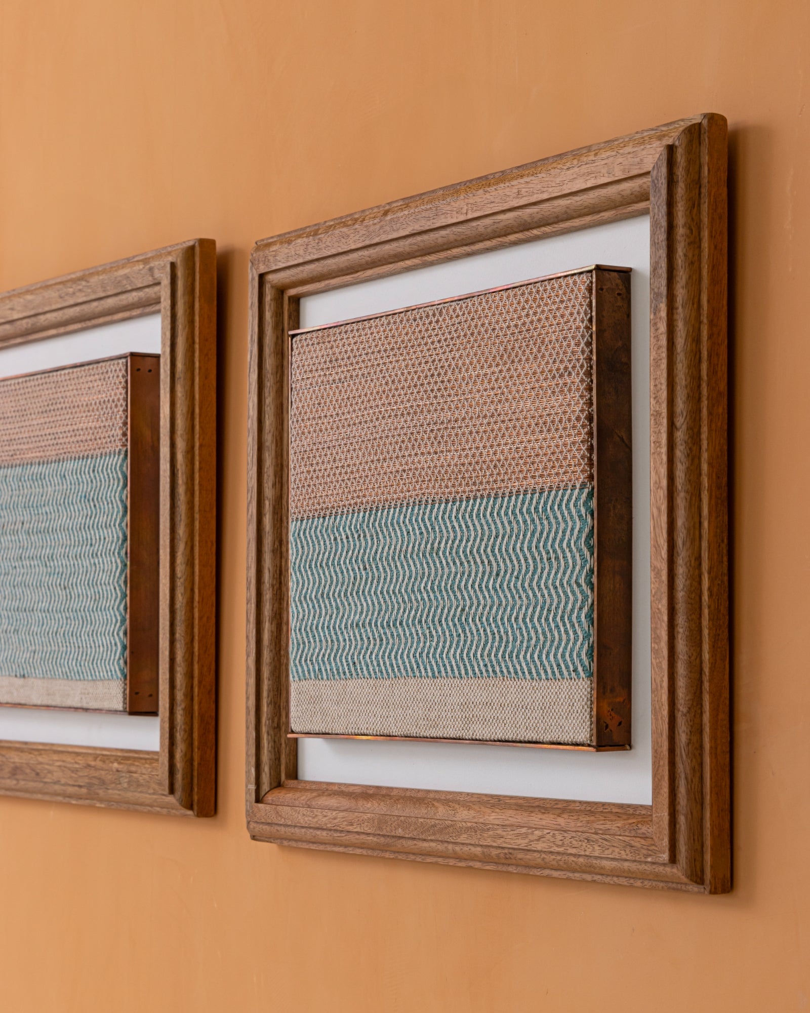Inspired by the meeting point of earth, water, and sky, ‘Horizon’ is a panel series that captures nature’s calm transitions through material and form. Handwoven copper wires blend seamlessly with soft cotton threads, creating a textured landscape that reflects balance and depth.
