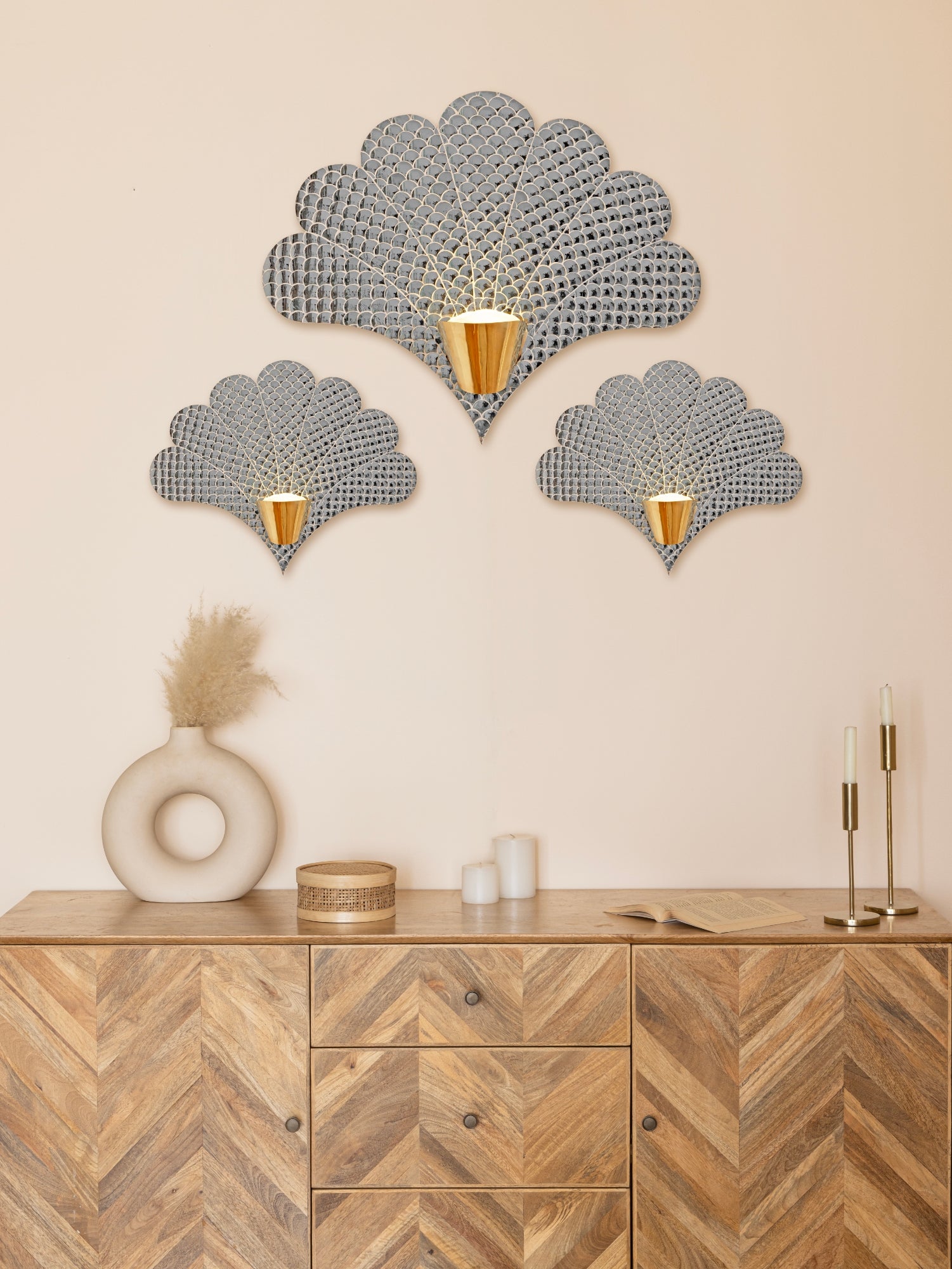 “Light of Fragments” is a wall light collection that explores the sacred balance between craft and clarity, where hand cut Thikri craft shimmers across moden silhouttes, Rooted in the symbolism of nature, From grace of Ashoka tree to modern contemporary designs.