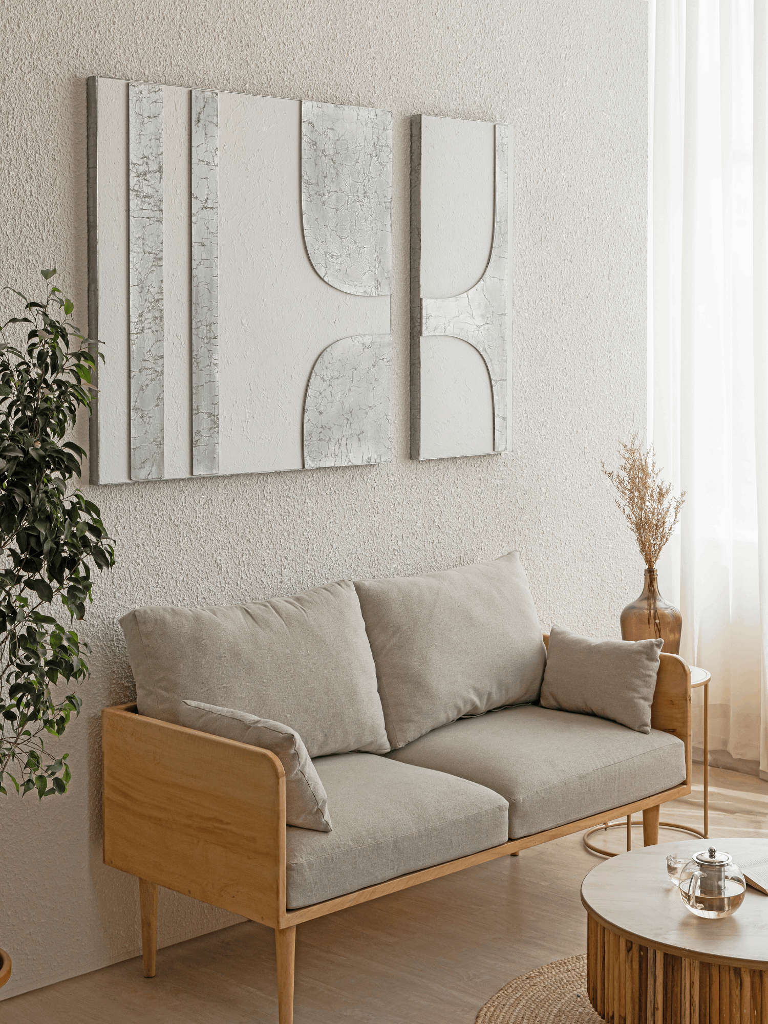 Inspired by the gentle curves of the female form, this panel series brings together flowing lines, fabric-like textures, and sculptural depth.