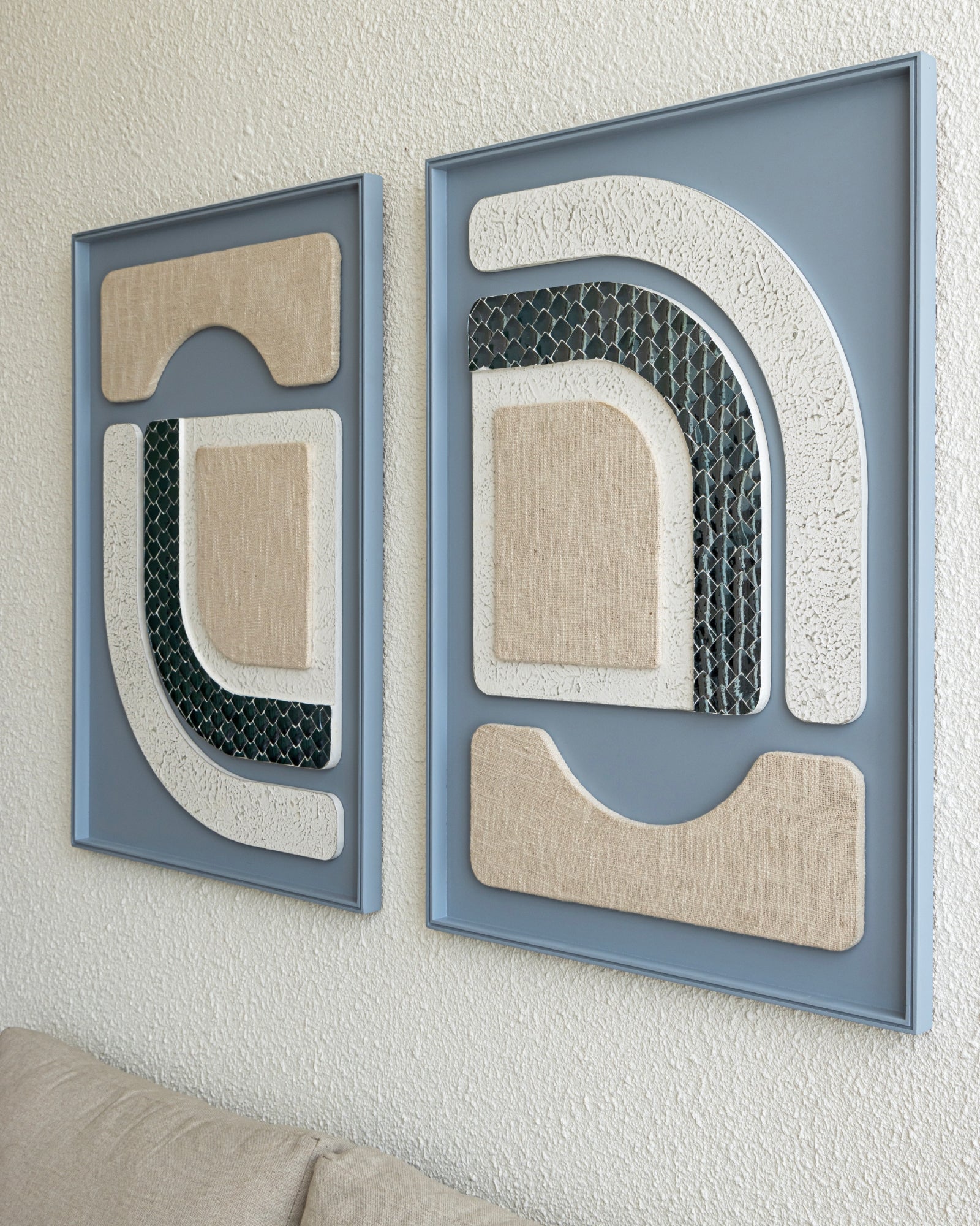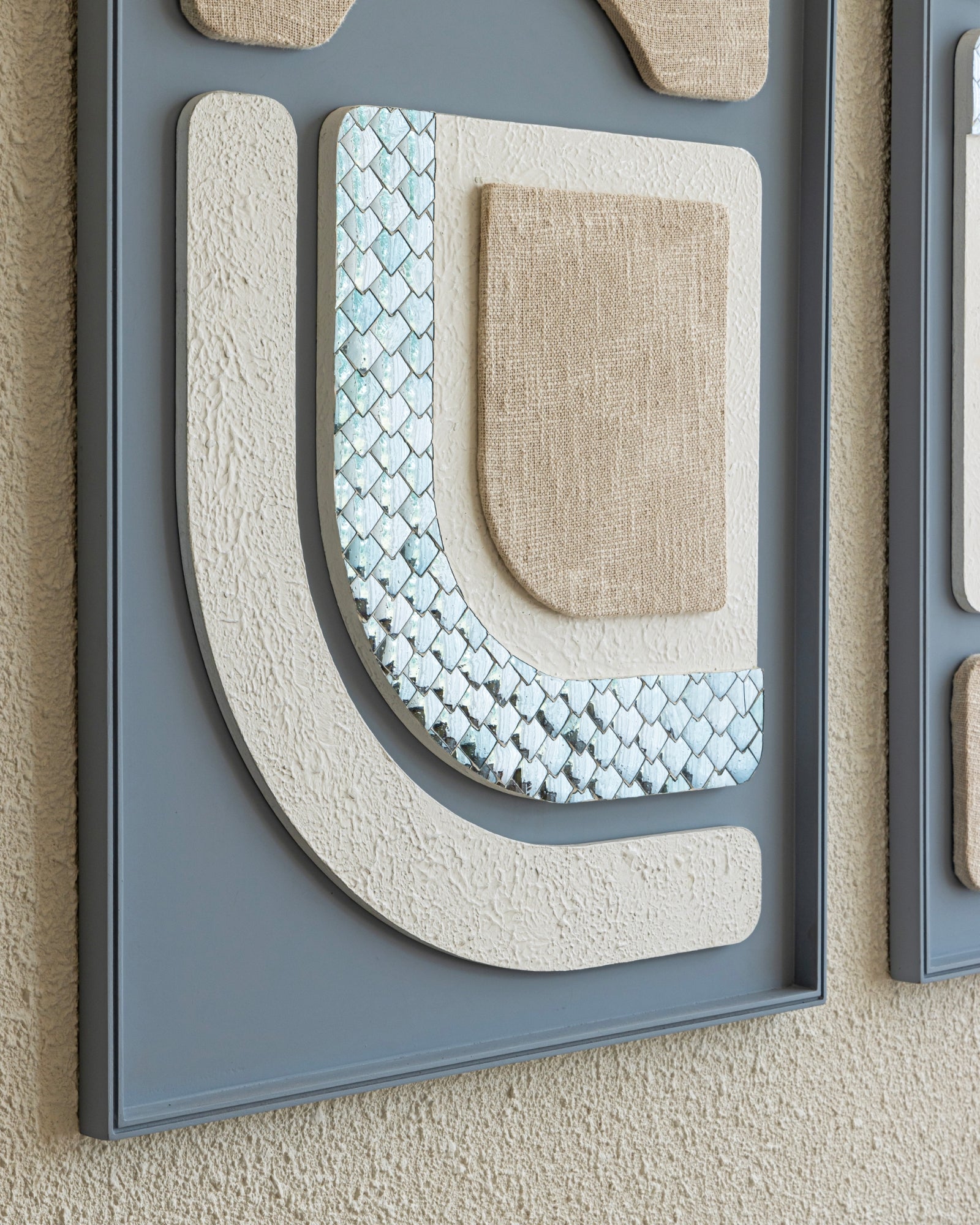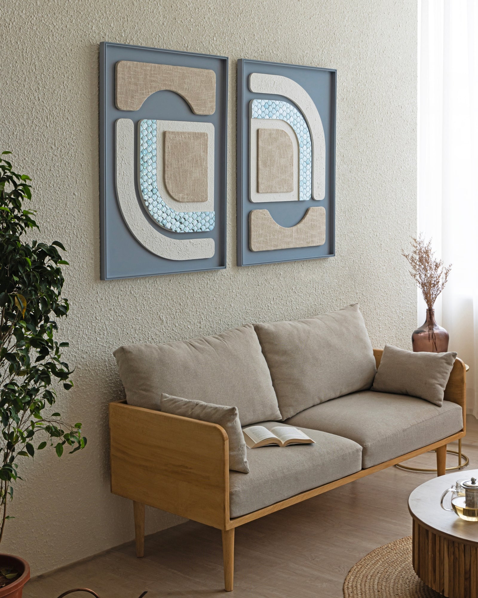 This collection showcases panels designed with rich fabric textures paired with thikri as the standout element. The contrast of soft textiles and reflective surfaces brings a balance of warmth and elegance. Clean geometric compositions and a refined modern appeal. Perfect for accent corners, stairway landings, passageways and statement backdrops.