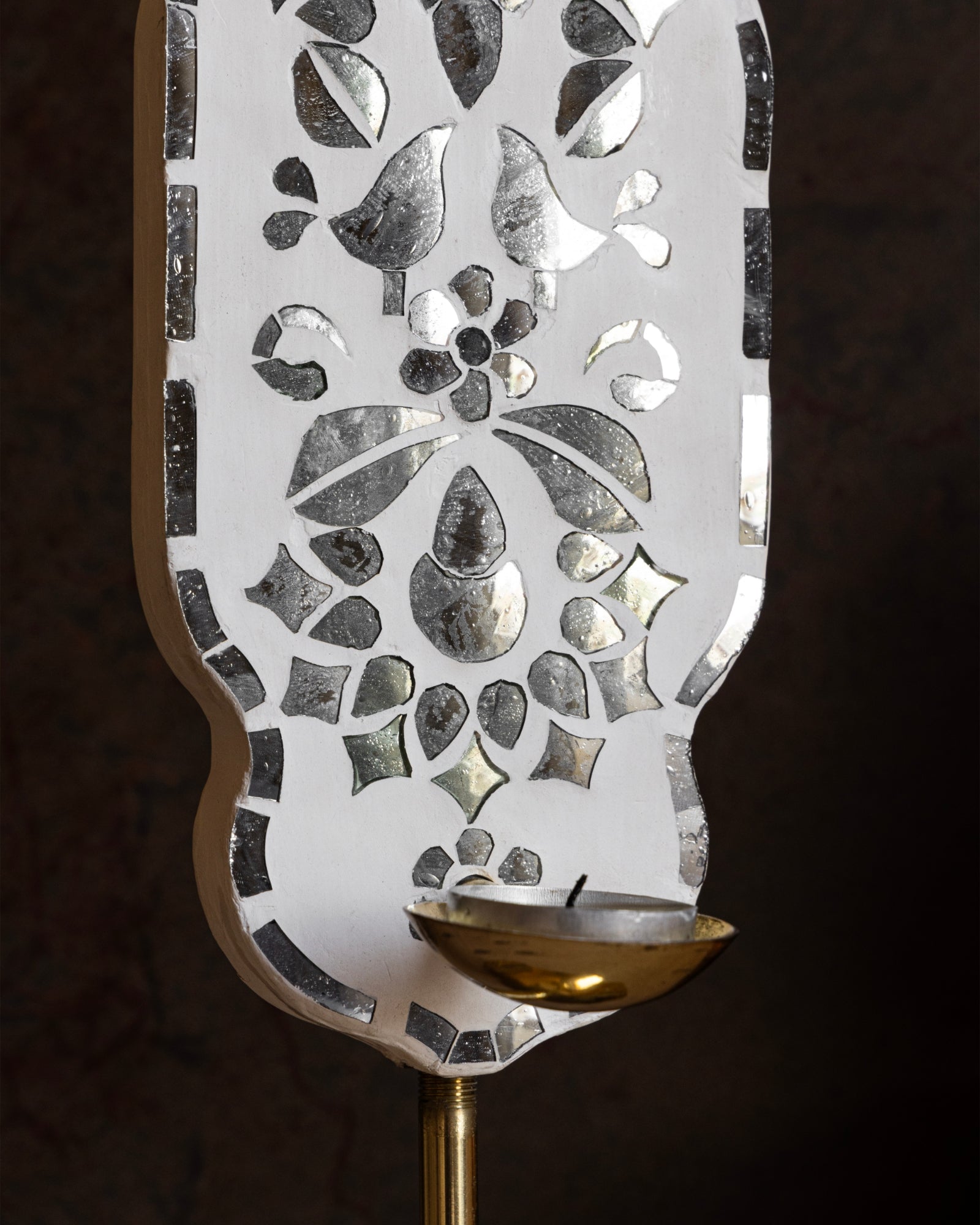 This collection of tea light holders brings a quiet brilliance to the spaces we live in crafted from hand finished brass and adorned with Thikri mirror inlay, Each piece reflects more than just light, a story impired by purity of flame and geometry of modern design Mirror plays a perfect role of reflection when candle is glowing and plays a perfect decor role for any space around.